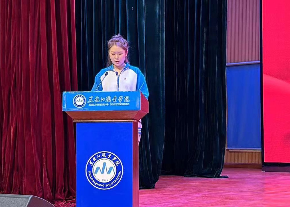 随后岗位实习学生代表李琦琦上台发言。她代表2022级全体学生感谢学院领导和老师们在校期间的悉心指导,让他们懂得岗位实习是连接理论与实践的桥梁,是自我提升和明确职业方向的宝贵机会。她表示将珍惜这次岗位实习机会,努力学习,不断进步,为将来的职业生涯奠定坚实基础。