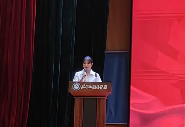 随后,实习学生代表孙琪峰发言。首先他代表全体同学向一直以来关心学生成长的学院领导、老师致以最诚挚的感谢,并作出三点承诺:一是秉承建工精神,视实习为成长阶梯,汲取经验转化为能力;二是提升责任意识,严守规章制度,以职业人标准要求自己;三是敢于面对困难,提升协作能力,积极投身企业建设,为企业贡献力量。在实习过程中展现建工学子的风采,圆满的完成实习任务。