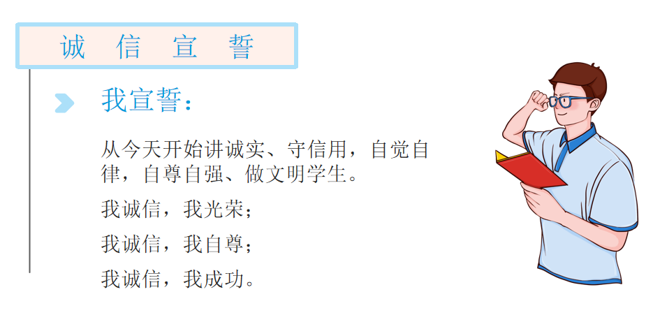 班主任李红梅老师从认识诚信、法律法规、诚信公约三个方面进行了介绍。从“诚”与“信”剖析诚信的含义,借助“立木为信”与“烽火戏诸候”的故事,引导同学们理解“诚信”对于个人和国家的重要意义。同时,同学们联系学校生活和社会生活纷纷展开讨论,激荡内心崇尚诚信、摒弃失信的美德,深刻感悟作为道德原点的诚信品质对己对人的价值。诚信问题的解决离不开法制的约束,随后,班主任从最近涉疫违法犯罪典型案例引入,讲解我国疫情防控期间,瞒报个人行程、不配合疫情防控的行为将面临的法律责任,督促学生关注疫情防控中的种种失信行为及其危害,倡导诚信防疫。班会即将结束时,代理班干部陈颖带领同学们共同进行诚信宣誓,做讲诚实、守信用,自觉自律、自尊自强的文明学生.