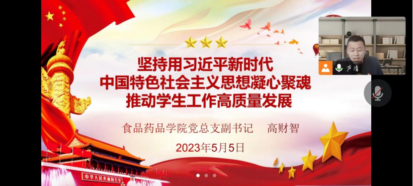 5月5日下午,食品药品学院党总支副书记高财智在2号实训楼525以《坚持不懈用习近平新时代中国特色社会主义思想凝心聚魂,推动学生工作高质量发展》为主题,为党总支全体党员讲授学习贯彻习近平新时代中国特色社会主义思想主题教育专题党课。党总支书记陈晓华主持,学院领导班子成员、全体教师党员、学生党员共同聆听。