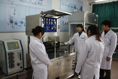 乳品加工实训室主要承担《乳品加工技术》、《畜产品加工技术》等课程的实践教学与学生的技能训练任务。实训室配备UHT超高温管式灭菌机组、热回流提取浓缩机组、实验室型喷雾干燥机、发酵罐、硬式冰淇淋机、雪糕机、恒温培养箱、胶体磨、无菌操作台、高压均质机、高速剪切乳化机、自动封杯机等,开设实训项目有UHT灭菌乳及乳饮料加工、风味乳及乳饮料加工、酸乳及酸乳饮料加工、乳粉加工、冰淇淋加工等。