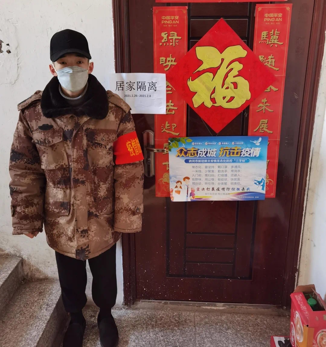 防疫故事2021年新元伊始,新冠肺炎的魔爪又一次伸了起来,这次疫情从农村地区开始崛起,黑龙江省极度重视,积极做好治疗防控的指导工作,基层工作者们不忘初心,日夜排查监管,尽心尽力地做好疫情防控中最基础、最重要的一环。作为一名大学生,看着一串串触目惊心的数字和逐渐被疫情渗入的家乡,觉得自己应该做些什么。于是,在大庆市疫情防控进入关键阶段,组织全民做核酸而缺少人手的时候,我积极主动地加入了林甸县疫情防控志愿者的行列。在村内配合村干部去巡逻查户,对村里挨家挨户开展地毯式覆盖式疫情排查,核对返乡人员的情况并进行记录。一个人能力有限,能做的事情微不足道,但是大家齐心协力,定能铸就防疫战线上的一砖、一瓦、一墙,我们一定能够打赢这场疫情攻坚战!