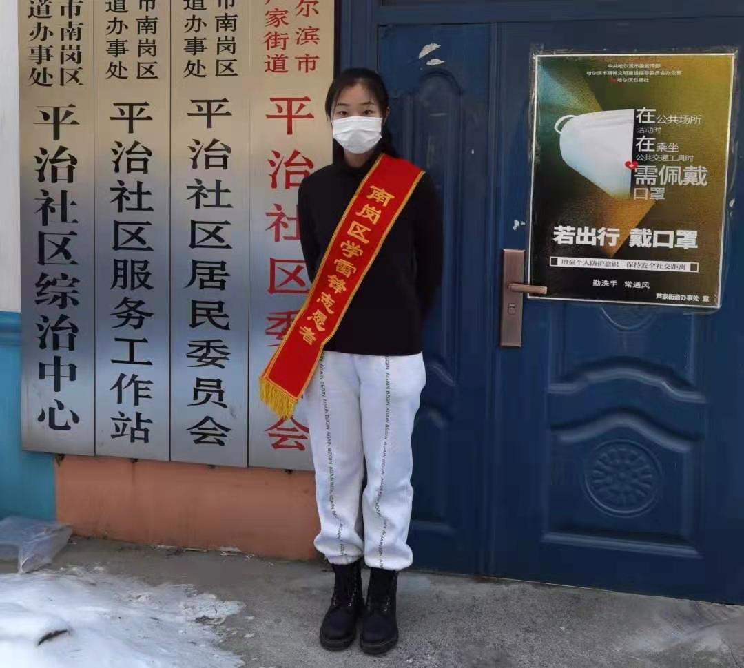 马佳琳,女,共青团员,食品药品学院生物制药20-01班,现志愿服务地点哈尔滨市南岗区平治社区。