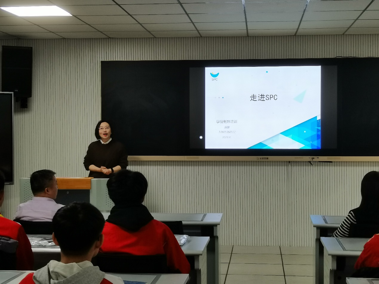 随后,胡娜进行了开班第一课宣讲,她从企业现状和发展规划、企业核心价值观、人才培养及晋升通道等方面进行了详细介绍,并以自己的亲身经历现身说法分享了在企业奋斗十年的收获,生动风趣的语言鼓励同学们只要坚持必然会有所收获,这一课唤醒了学生努力奋斗实现自身价值的进取之心,更明确了学习的目标,为他们未来的学习和工作打下坚实的基础。