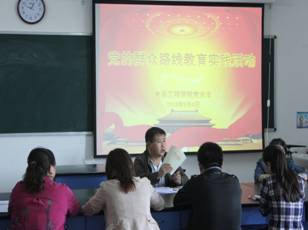 94日下午,我院党总支在2号实训楼417召开了全体党员工作会议,传达学院关于党的群众路线教育实践活动工作会议精神,学习了学院党委书记冯玉龙同志在学院党的群众路线教育实践活动动员大会上的讲话及《学院开展党的群众路线教育实践活动实施方案》(黑经院字[2013]20号),结合目前食品工程学院实际,重点讨论研究了我院深入开展群众教育实践活动实施方案的指导思想、方法步骤、重点环节及组织领导等要点内容。