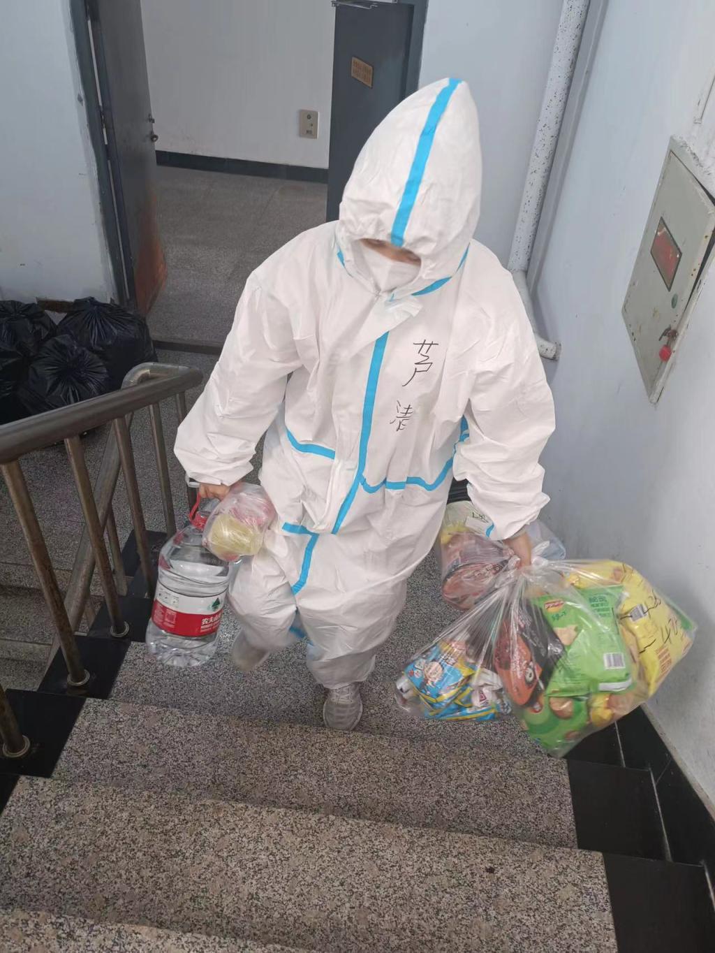 学院院长赵岩带领公寓组志愿者进驻学生公寓,与学生同吃同住。他们第一次穿上防护服、戴上橡胶手套,夜以继日的忙碌在健康扫码、搬运行李、接餐送餐、运送生活用品之中,他们用自己的实际行动,无私无畏地传递着爱与暖,散发着光与热,温暖着每一名回归校园的同学。