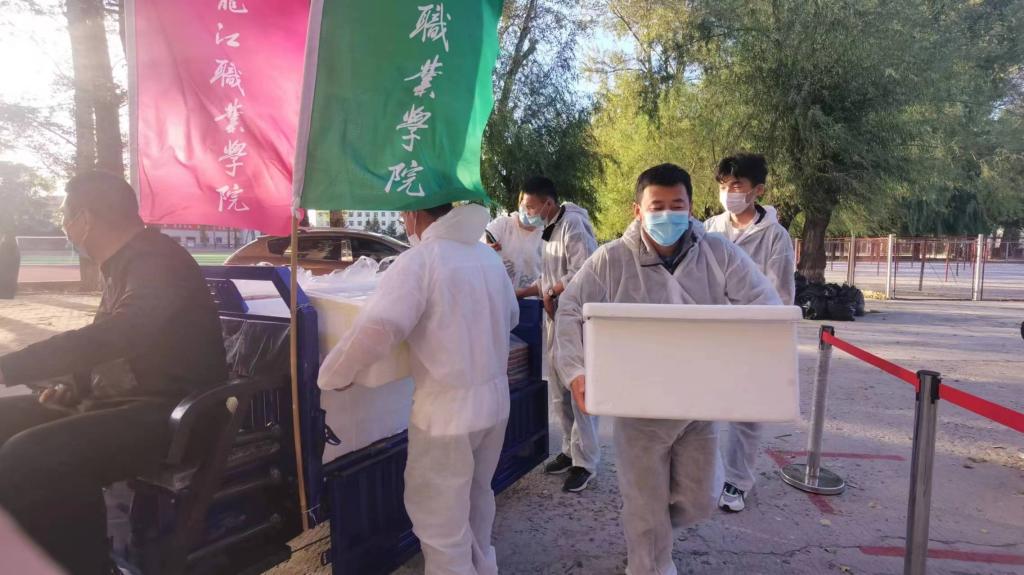 党总支副书记高财智带领送餐组辅导员,手递手接过返校学生,消毒、入寝、送餐等工作环环紧扣;搜集整理学生行程信息、和学生谈心谈话、疏导学生紧张情绪,事无巨细地为学生解难题、办实事。