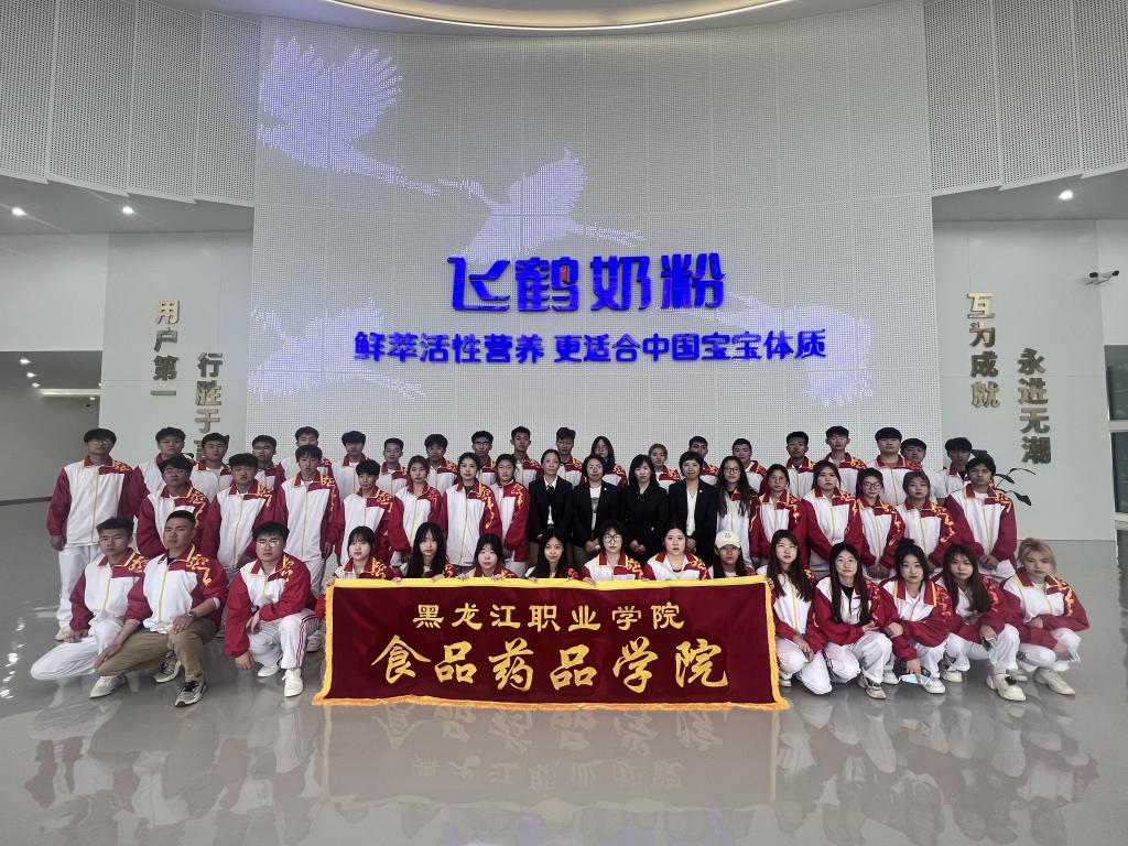 2023年5月30日,食品药品学院党总支书记陈晓华、副院长韩双带领乳品加工课程团队教师及2022级食品智能加工技术专业70名学生走进飞鹤(哈尔滨)智能化产业园企业课堂沉浸式学习。
