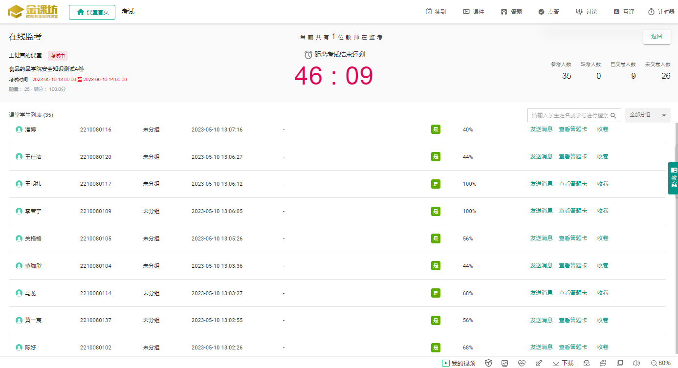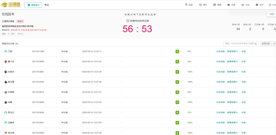 为贯彻落实上级实训室安全通知精神,督促师生扎实开展全员培训,强化师生安全实训意识。5月10日下午,学院利用金课访平台组织2021级和2022级同学及全院教师进行线上实训室安全知识测试工作,食品药品学院院长赵岩,副院长韩双现场进行巡考指导。