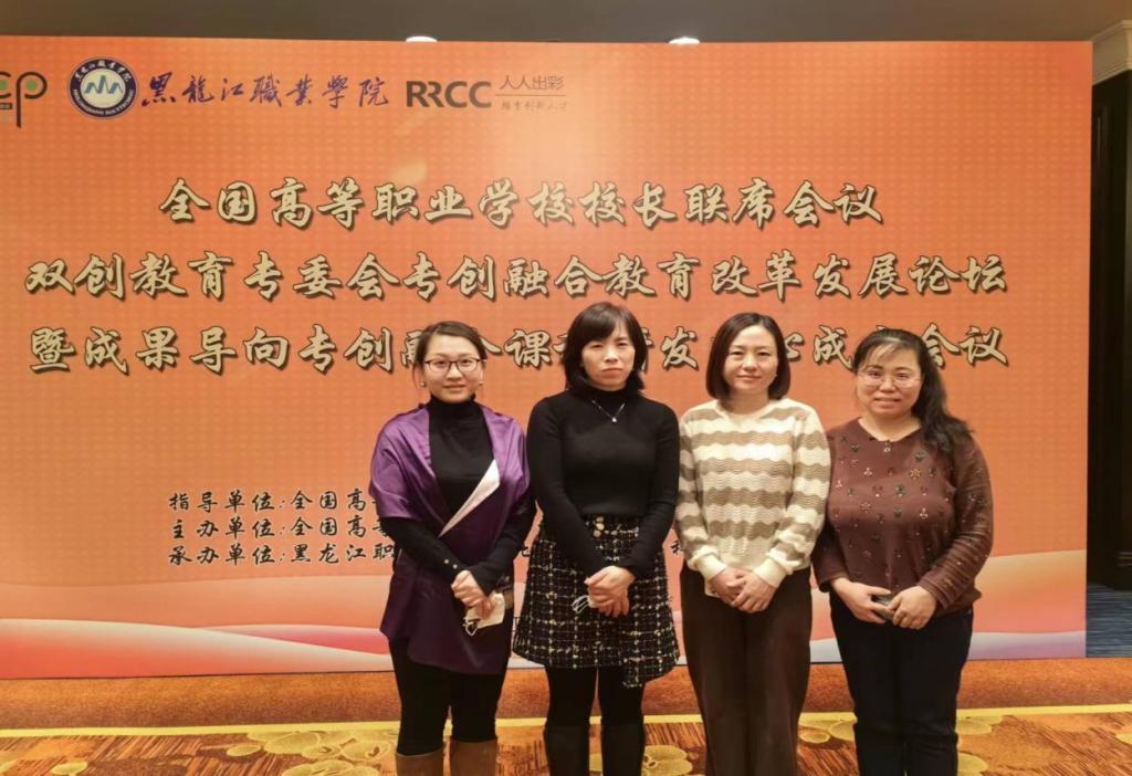 2023 年 11 月 23 日-—25 日由全国高等职业学校校长联席会议双创教育专委会主办、永利集团88304官网和北京人人出彩科技有限公司共同承办的“全国高等职业学校校长联席会议双创教育专委会专创融合教育改革发展论坛暨OBE特色专创融合课程研发中心成立会议”在哈尔滨香格里拉大酒店宴会厅举行。我院副院长韩双、专业主任徐美佳、专任教师李红梅、尚磊参加了“校联会双创教育专委会专创融合教育改革发展论坛微工作坊课程体验”。