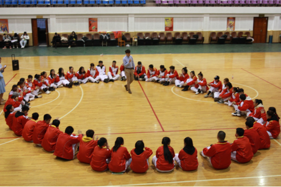 在“我们是最棒的”、“杯水车薪”、“坐地起身”等团队训练游戏活动中各组同学认真配合,深刻体会到了团队的力量。