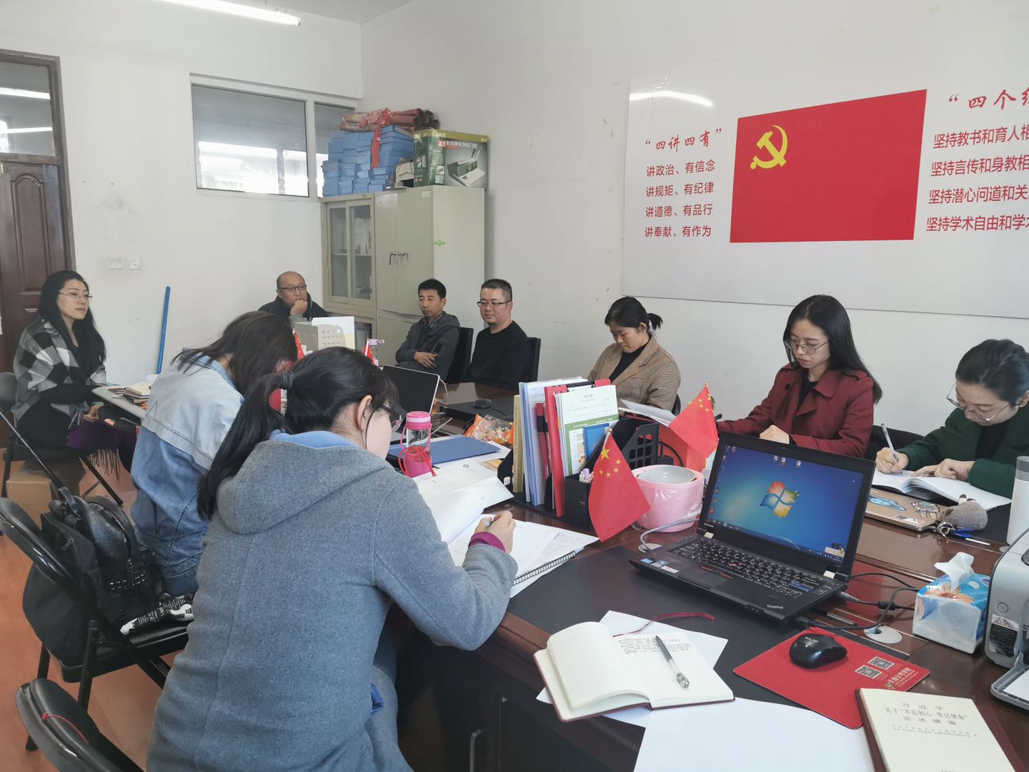 2019年10月10日,思想政治教研部领导、各教研室主任、相关专业教师及新任教师在清华楼西J102教室展开了一场集体听评课活动,授课教师李金阳讲授《职业生涯规划》课,李老师备课认真,准备充分,讲授过程逻辑清晰,娓娓道来。参加听课的老师聚精会神,认真听记。课后,全体教师在肯定李金阳老师教学逻辑性强,基本功较扎实的同时,也指出了教学过程中存在的问题和不足,并提出具体的改进建议。最后,思政部主任在总结教师点评的基础上,对其教学亮点与教学建议进行点评,并对今后的教学公开课提出更高的要求。