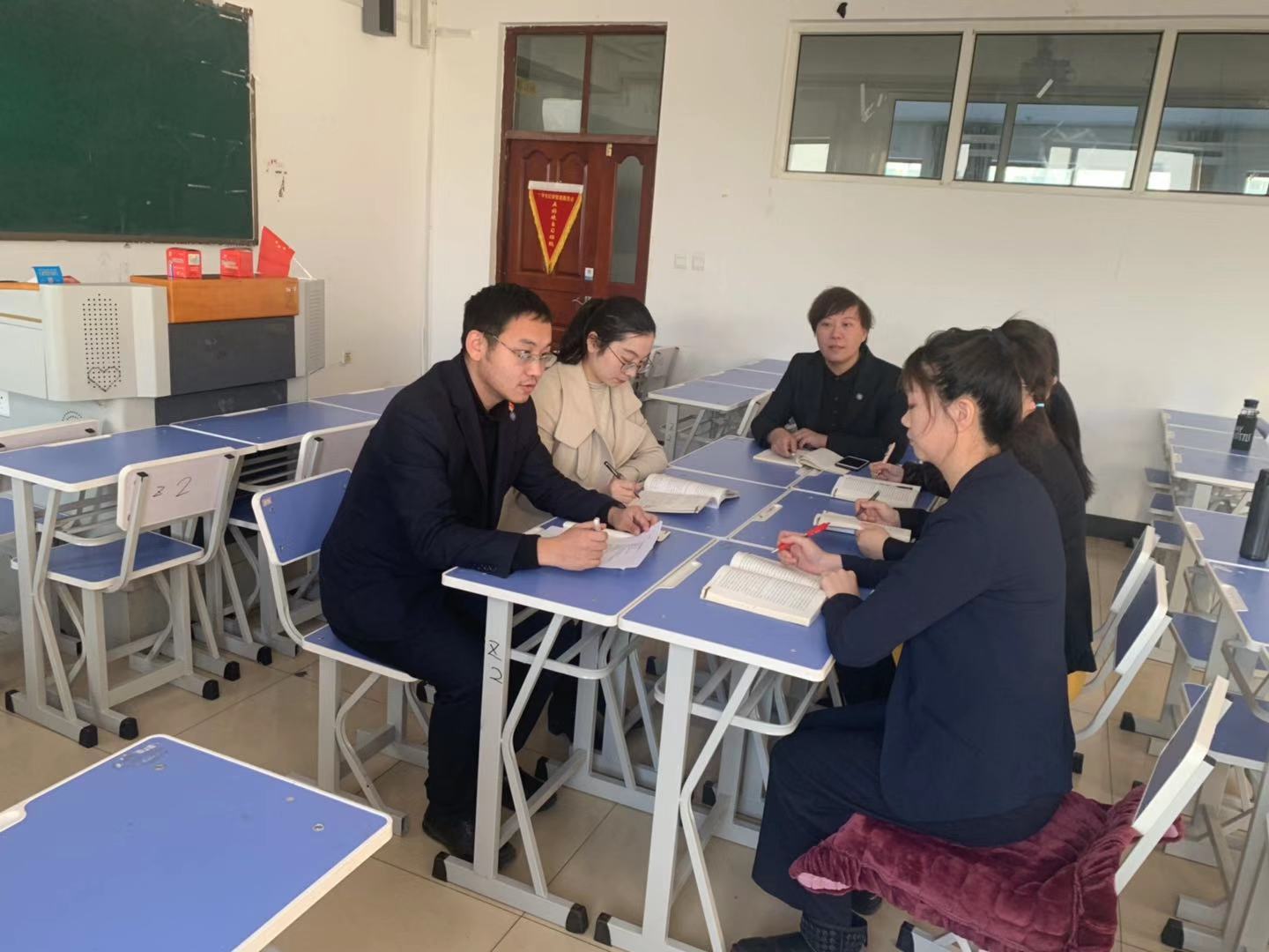 活动由孔令声老师主持,主备教师朱今一与各位教师分享了《思想道德修养与法律基础》中第六单元《尊法学法守法用法》的教学设计、教学案例。孔令声老师对教学重点、难点进行了详细剖析,并提出有效教学建议。其他教师纷纷发言,集思广益,对本单元教学设计进行了深入研讨。本次集体备课提高了教师们对第六单元知识点的把握,实现了资源共享。此外,大家在活动中还交流了各自在本学期教学中遇到的困难和问题,全体教师踊跃交流,纷纷介绍自己的小妙招。