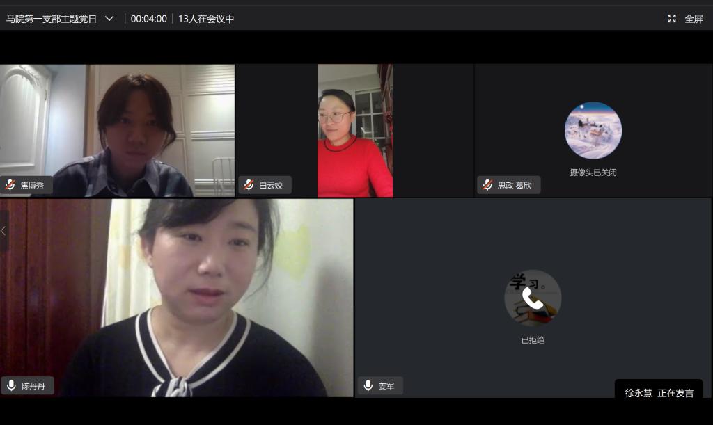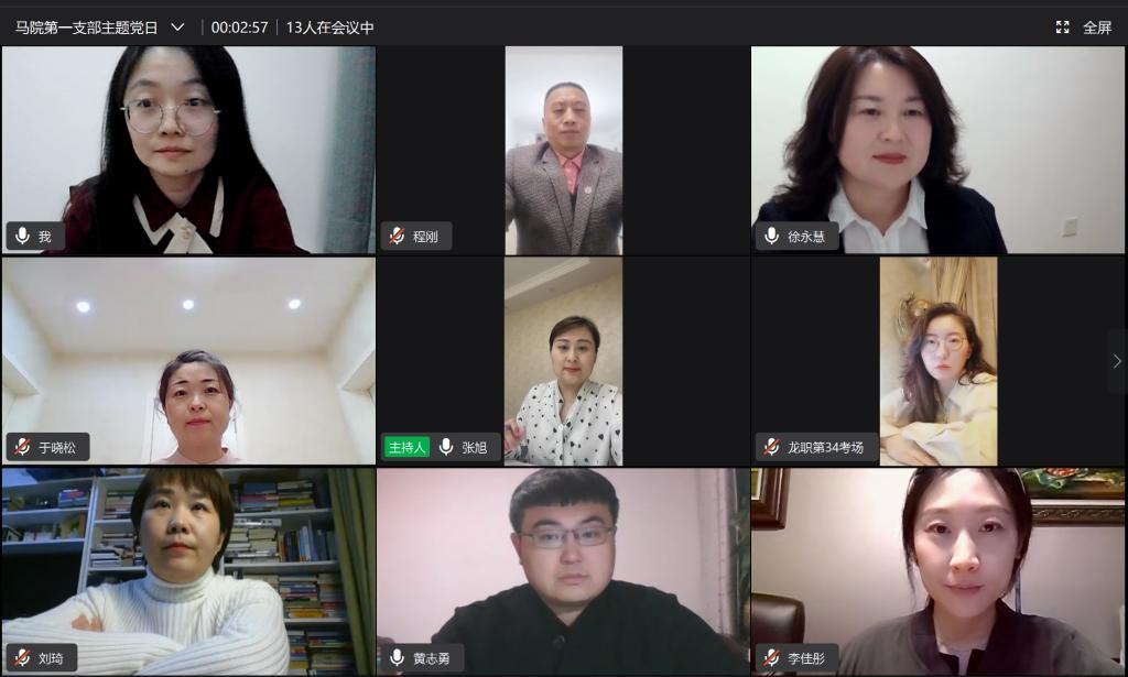 3月27日,马克思主义学院教师第一党支部线上开展“加强理论学习,增强党性修养”主题党日活动,活动由第一支部书记徐永慧同志主持,马克思主义学院党总支书记程刚和第一党支部全体党员参加。