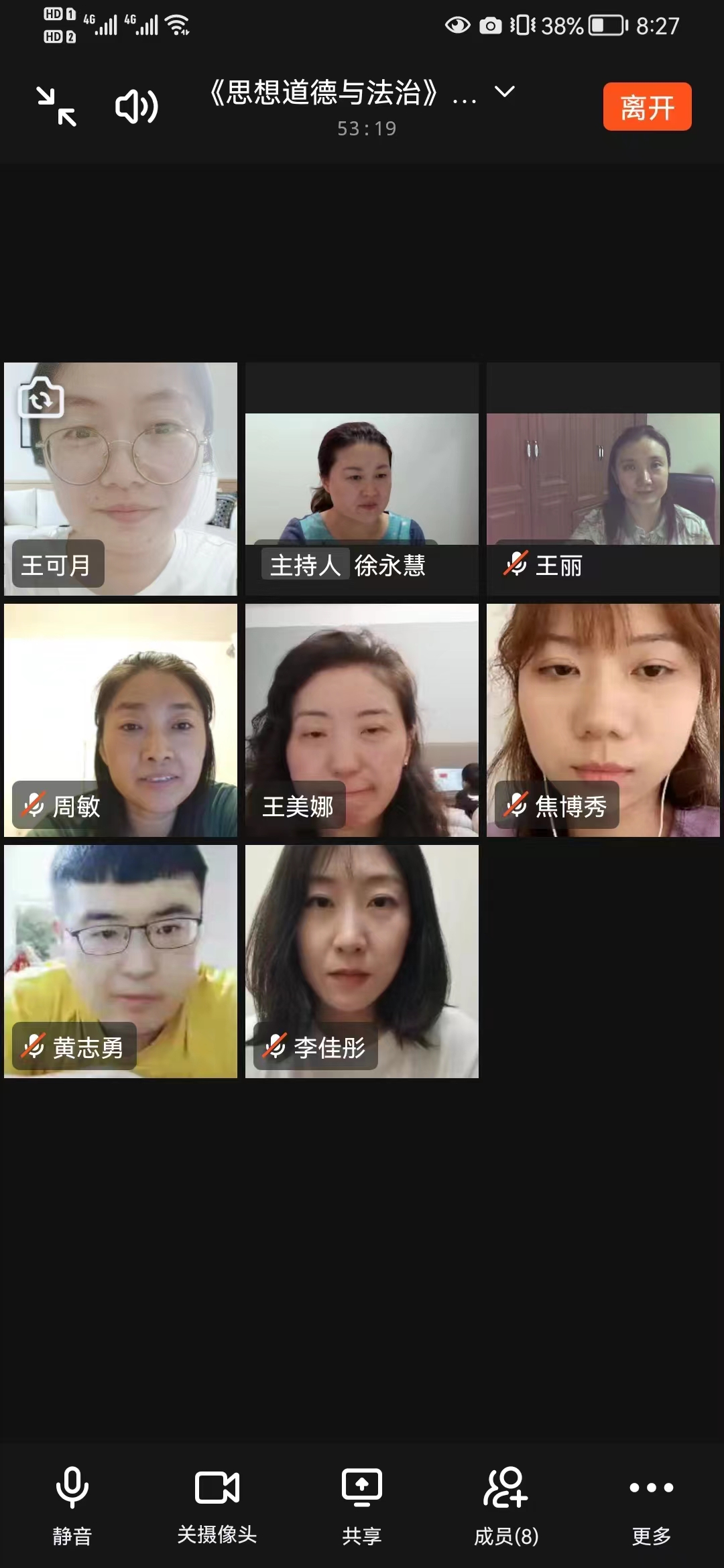 2022年8月19日,德育教研室召开新学期第五次集体备课会,本次备课会由德育教研室主任徐永慧老师主持,通过钉钉线上进行。