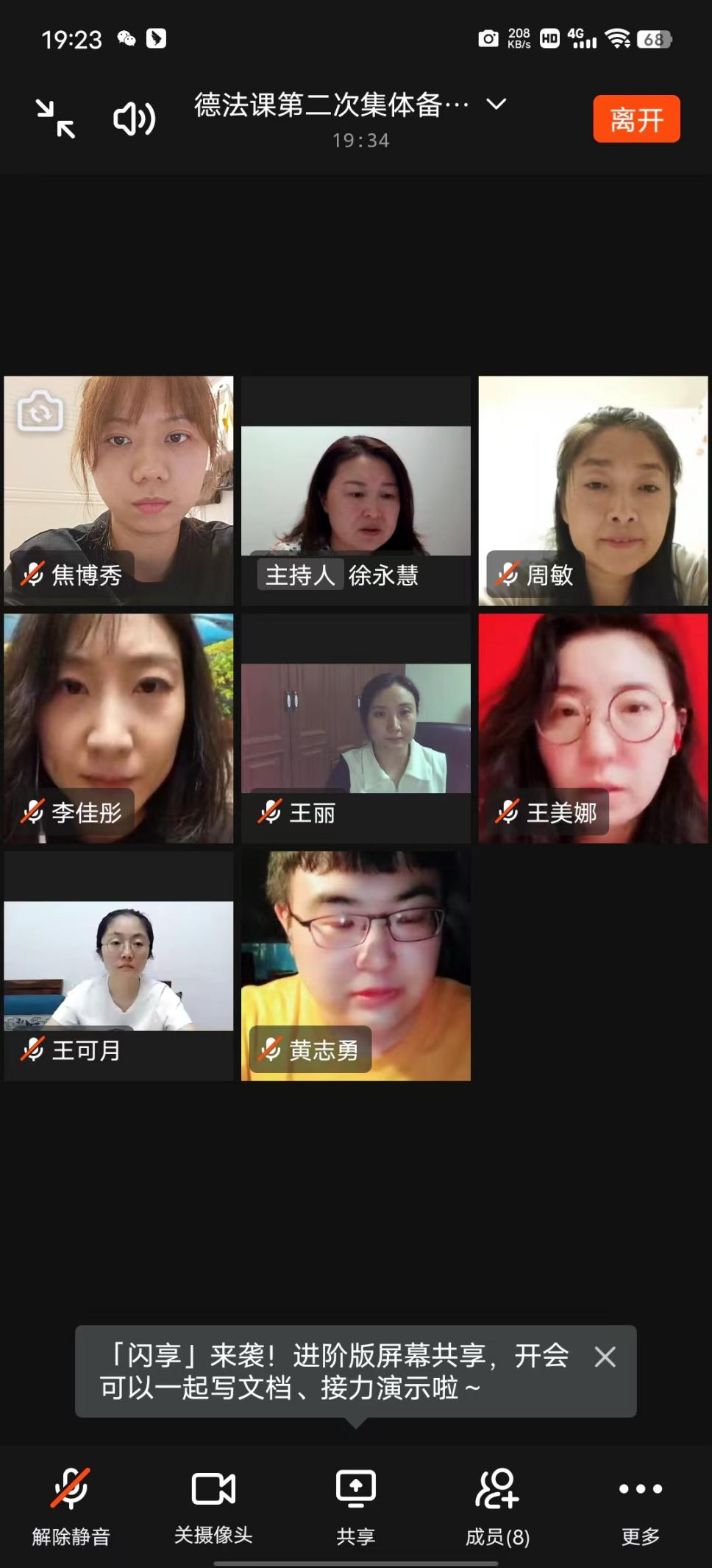 在教研室主任徐永慧老师的带领下,德法课授课教师于8月10日晚通过钉钉线上召开了本学期第二次集体备课会。会议内容分以下两部分: