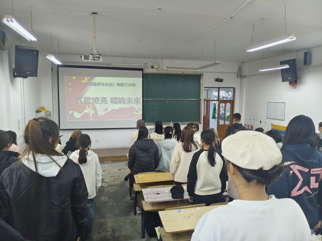 近日,思想道德与法治教研室全体教师开展了学生课前齐唱红歌主题活动。