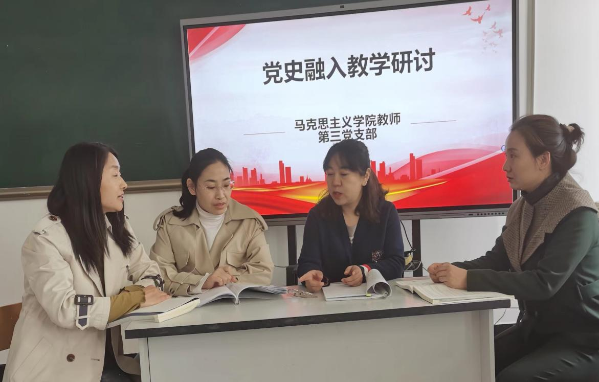 马克思主义学院教师第三党支部开展主题党日活动,组织党员教师研讨2024年2月中共中央印发《党史学习教育工作条例》。《条例》明确指出,“用好学校思想政治理论课渠道,推进大中小学思想政治教育一体化建设,推动党史进教材、进课堂、进头脑,发挥党史立德树人的重要作用。”为贯彻落实中央精神,结合本学期的思政课程内容,把党史有效融入到思政课教学中,党员同志们学文件、悟思想、讲党史、扬斗志,同志们在研讨中分享了如何将党史融入思政课教学。