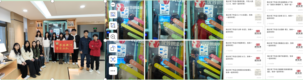 4月24日,清华楼二楼的朗读亭内,声声铿锵有力的朗读声此起彼伏,芳林新叶学习小队在带队教师的组织下,以“青春之声铸信仰 芳林新叶传薪火”为主题,开展了一场浸润心灵的朗读活动。通过诵读经典、学习理论、分享感悟,引导学生在沉浸式体验中坚定理想信念,强化使命担当。