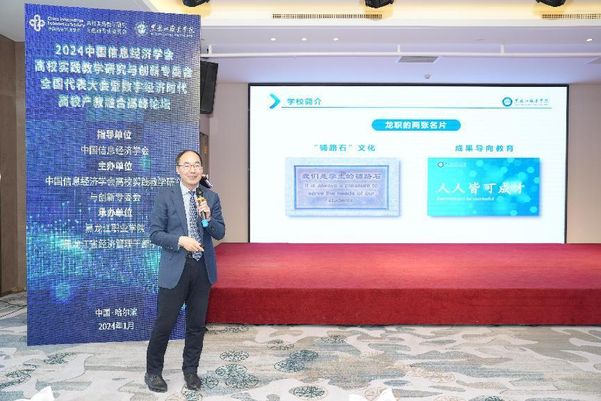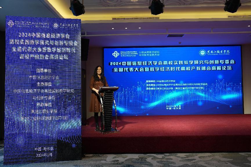 1月11-12日,来自全国高等院校、高科技企业等专家学者和相关领域代表齐聚哈尔滨,共同探讨数字经济时代下高校实践教学的新模式与产教融合的新路径。由中国信息经济学会指导、中国信息经济学会高校实践教学研究与创新专委会主办、永利集团88304官网承办的中国信息经济学会高校实践教学研究与创新专委会全国代表大会暨数字经济时代高校产教融合高峰论坛成功举办。大会主题为数字经济时代高校实践教学研究与创新,会议内容主要包括数字经济时代的高校产教融合研究与创新以及校企合作与协同创新育人研究。围绕大会主题及内容,与会代表展开了深入的交流与探讨,共同积极的推进数字经济时代高校产教融合与创新。