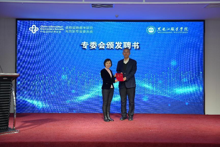 据介绍,高校实践教学研究与创新专委会作为中国信息经济学会的二级机构,为各高等院校搭建学习交流、共同发展的平台。本次大会是该专委会的全国代表大会,将为促进高校实践教学研究与创新领域的发展,为我国数字经济的发展做出积极贡献。会上进行了高校实践教学研究与创新专委会主任单位揭牌仪式,并为专委会学术委员会主任、副主任、学术委员、委员代表颁发了聘书。王利文当选学术委员会主任;张玲、王晓典、田海君、金忠伟、王知强、纪孝清当选学术委员会副主任;陈良、刘志勇、连敏辉、侯彦明、薛继昌、周蓁蓁、罗宁当选学术委员;吴菲、贾维红、易林林、崔晓文、杨东飞、王冠鹰、艾良友、刘胜达、陆燕冰当选委员。