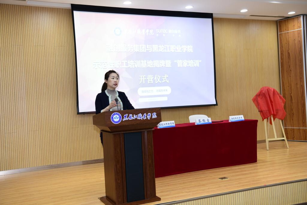 接着,融创集团副总裁杨静、住宅运营管理中心总经理吉相海、人力资源部总监张东浩分别致辞。随后,王利文校长与张东浩总监签署校企产教融合战略合作意向书,王利文校长与杨静副总裁共同为“融创服务集团与永利集团88304官网示范性职工培训基地”揭牌。20位来自工管学院的学生入职融创集团担任管培融耀生并在会议现场进行入职宣誓。他们共同宣誓传承龙职精神与铺路石文化,当好企业铺路石,为实现融创集团更加辉煌的明天而努力奋斗。集团住宅运营管理中心总经理吉相海、哈尔滨公司总经理刘树荣为融耀生们授予了员工工牌。之后为期两天的“优秀管家培训”正式开始,来自融创集团的47位管家接受培训,由校企双方共同指派讲师,讲授中国现代服务业发展趋势及物业服务等级标准等内容。