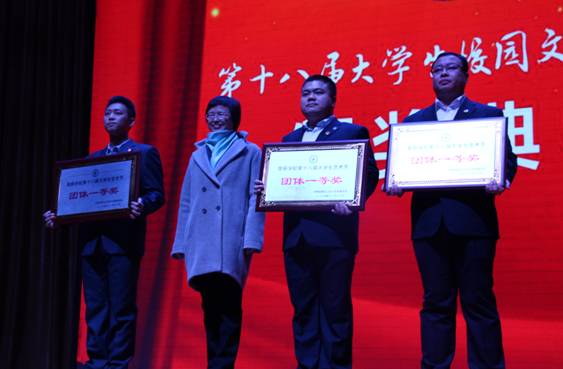第十八届大学生艺术节颁奖典礼暨闭幕式汇演于11月18日13:20在学府会堂举行,我院荣获本届艺术节团体一等奖。