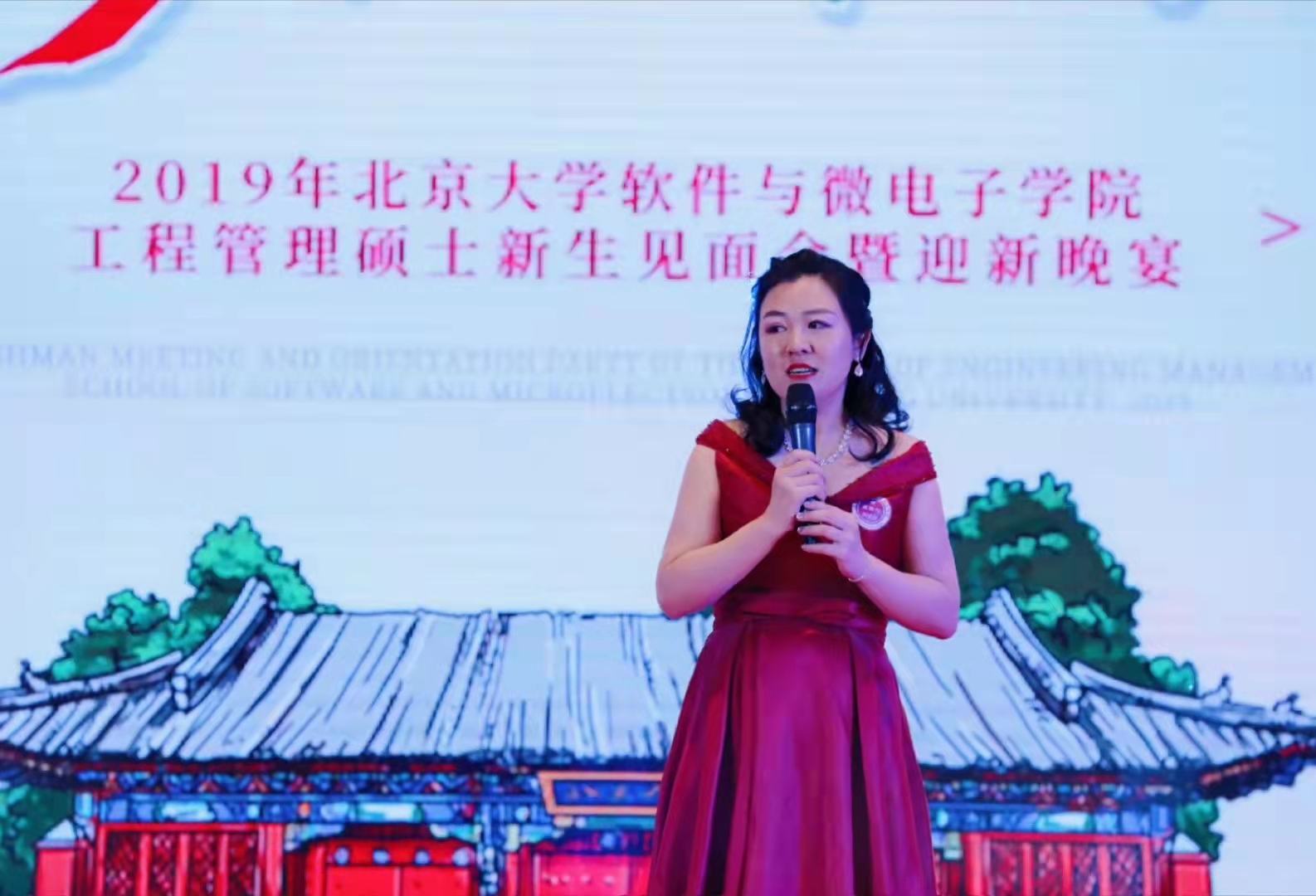 李蕾作为活动总策划在让2019北大MEM迎新晚会上发言
