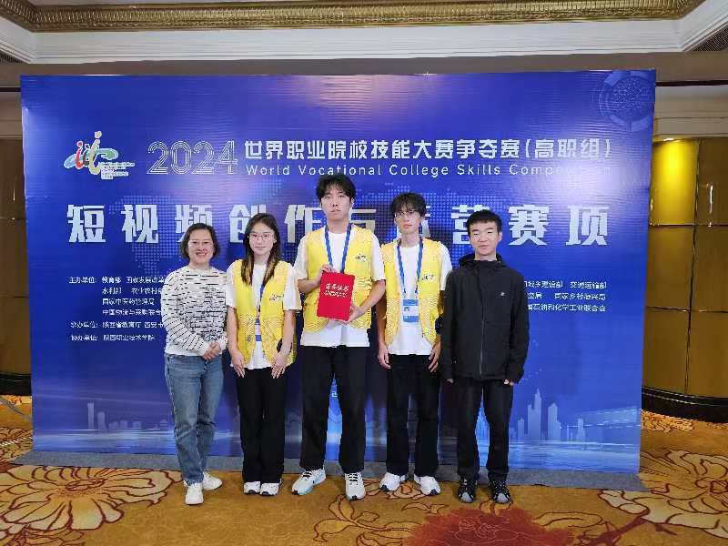 10月28日至30日,2024年世界职业院校技能大赛总决赛争夺赛(高职组)新闻传播赛道短视频制作赛项在陕西职业技术学院举行,全国共有62所院校参赛。永利官网数字商贸学院教师高霞、赵彧指导的高洪瑞、张津滈、佟晓晴三名学生在大赛中荣获铜奖。