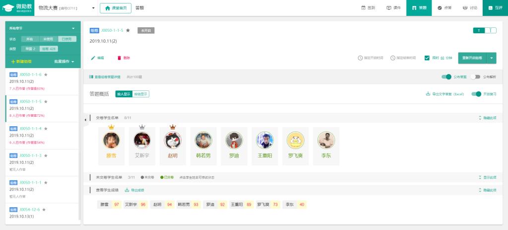 比赛内容主要包含三部分:职业技能测试、物流作业方案设计和物流作业方案实施。指导教师通过微助教平台,组织学生每天进行职业技能测试答题;物流作业方案设计的训练,学生根据指导教师提供的测试题,每人每周至少单独完成一套方案,然后由指导教师进行批改,每周进行一次方案设计比赛,调动学生的积极性,同学们通过相互交流,互相学习,共同进步;物流作业方案实施属于实操环节,由于没有实训场地,学生通过观看往届比赛的视频资料,总结各环节的操作步骤、注意事项等内容。