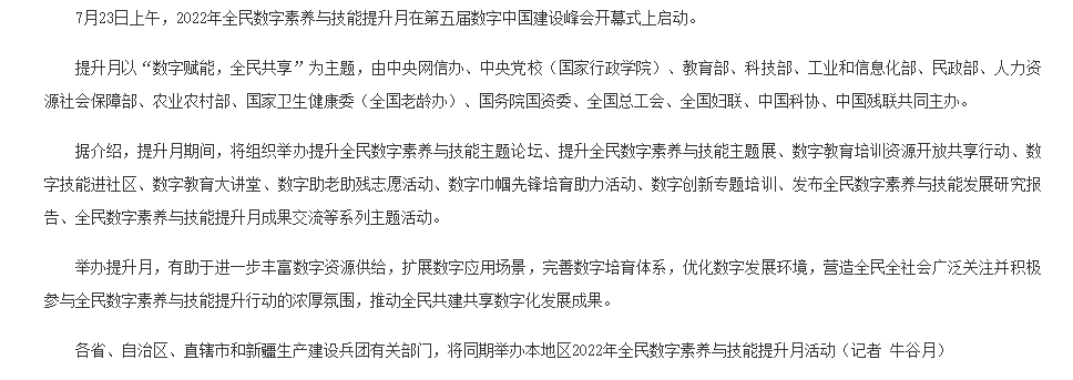 拥抱数字文明 2022年全民数字素养与技能提升月正式启动