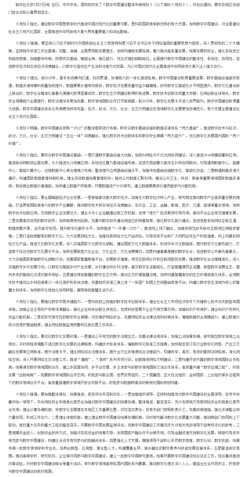 中共中央 国务院印发《数字中国建设整体布局规划》