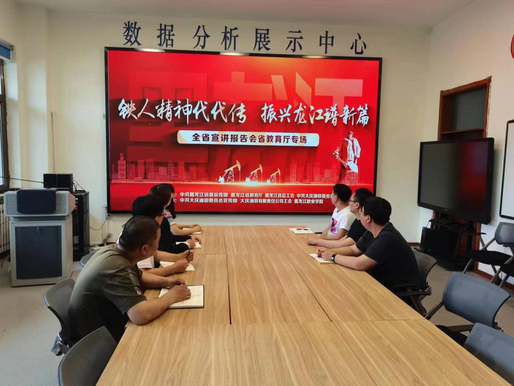 2023年6月20日,在清华楼121室,支部组织党员同志观看由中共黑龙江省委宣传部、黑龙江省教育厅、黑龙江省总工会、中共大庆油田委员会主办,由中共大庆油田委员会宣传部、大庆油田有限责任公司工会、永利集团88304官网承办的“铁人精神代代传 振兴龙江谱新篇”全省宣讲报告会。