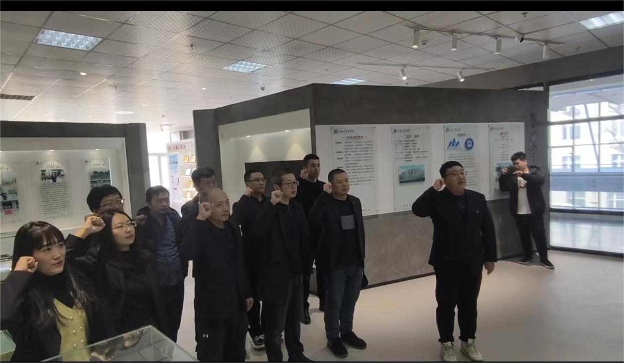 在铺路石文化中心讲解老师的指引下,我们参观了“铺路石文化理念”、“品牌文化活动”、“铺路石风采”、“大国工匠训练营”、“当好民族复兴的铺路石”这五部分展区,从中了解到学校发展历史和铺路石文化建设发展历程。最后,支部委员王晨宇同志带领部门教职工共同宣誓“教工誓词”。
