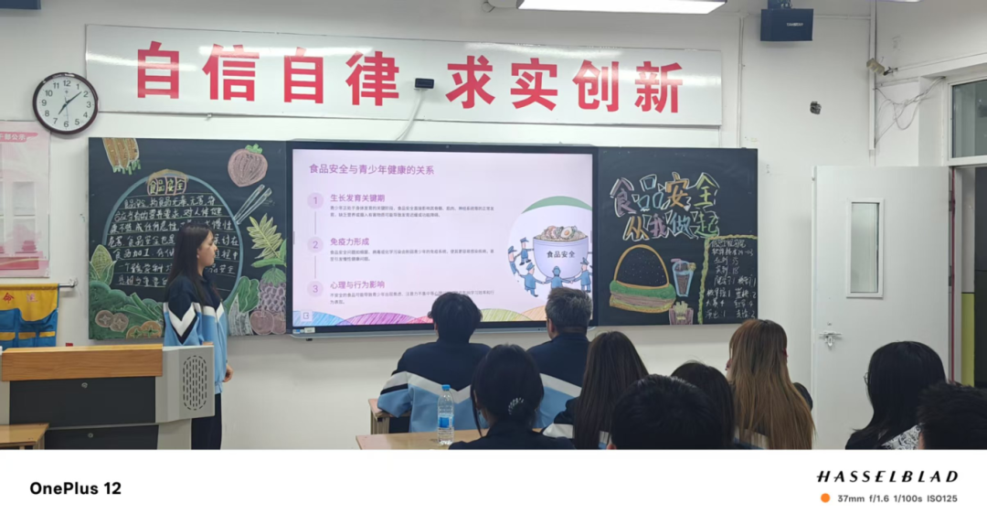 班会中,通过展示各种食品的图片、案例分析和播放相关视频等形式,向同学们介绍了食品安全的重要性以及垃圾食品的危害性,引导大家正视身边的食品安全问题,同时还强调了要从正规渠道购买食品,拒绝路边摊的不洁食物等,提醒学生们养成良好的饮食习惯,懂得要对不健康食品说“不”!
