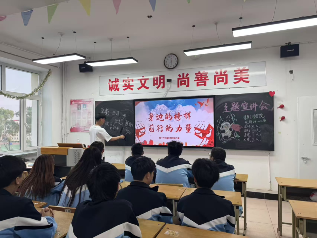 欧阳毓亭同学作为此次的分享人,分享了自己的学习经验和成长感悟。他的故事,像一把把火炬,点燃了在场同学们心中的梦想之火。这份励志的精神将在校园里蔓延开来,激励着同学们不断追逐自己的梦想。