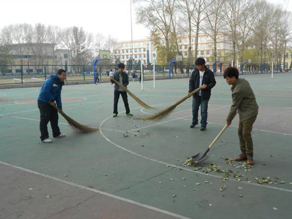 这次的义务劳动主要目的是“清扫落叶、美化校园”,这次活动的清扫范围是学校篮球场地,由于球场附近树木多所以必须每天清扫,清扫后统一装垃圾袋并带出场地,虽然有时天气情况比较恶劣,但是清扫过程中,他们的劳动积极性很高,大家十分认真,做到了每个角落都清理彻底,给篮球爱好者美丽空间,真正实现“美校园”。我院同学从不投机取巧,更没有拈轻怕重,在劳动中充分体现出了不怕苦不怕累的精神。这次的义务劳动自10月8日通知下去后,各专业同学就开始了认真准备,如值日分组明确、清扫时间准确到位、清扫工具领取等等。这段时间的清扫工作做的非常彻底,篮球场地的各角落都得到了彻底的清理。