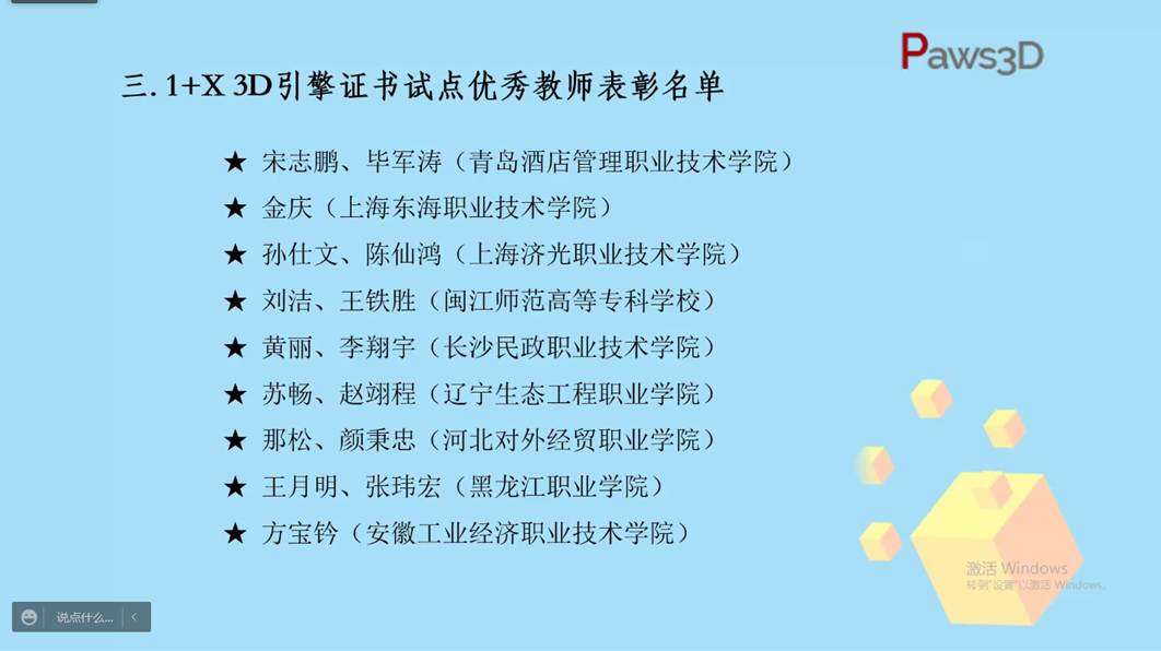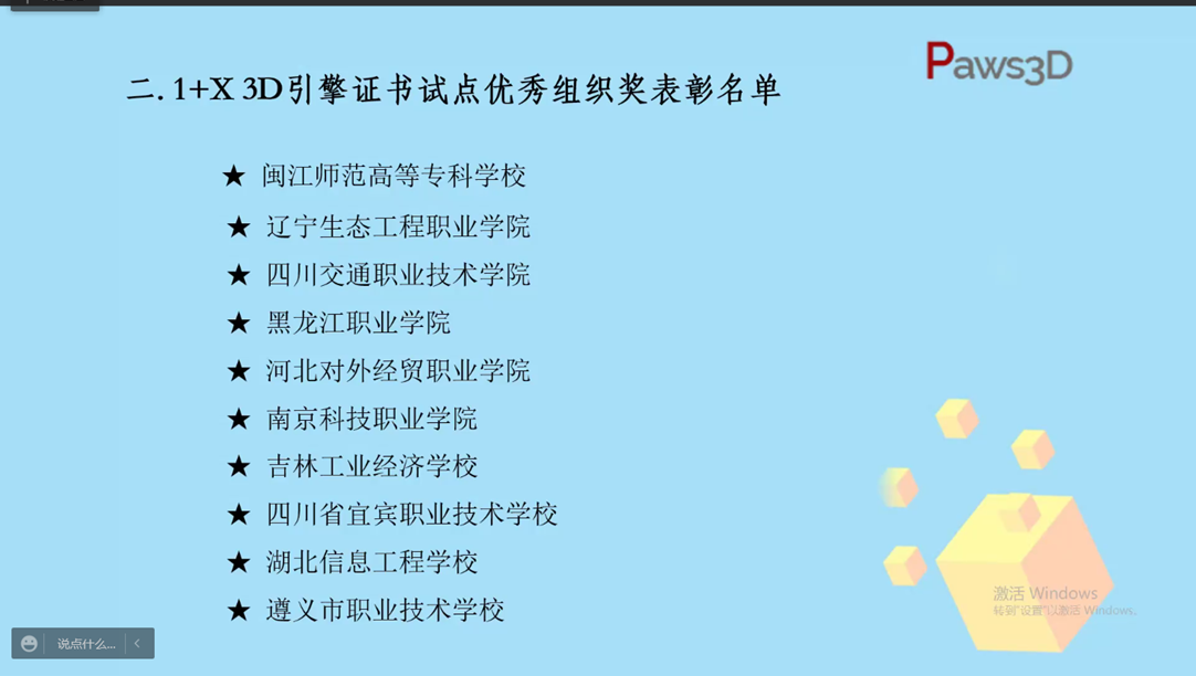 2022年3月25日,动漫制作技术专业在国家指定1+X职业院校职业证书认证单位唯乐屋的年度“1+X 3D引擎技术应用证书企业年度表彰”大会上获得“优秀组织奖”、“优秀教师”、“先进个人”奖项。
