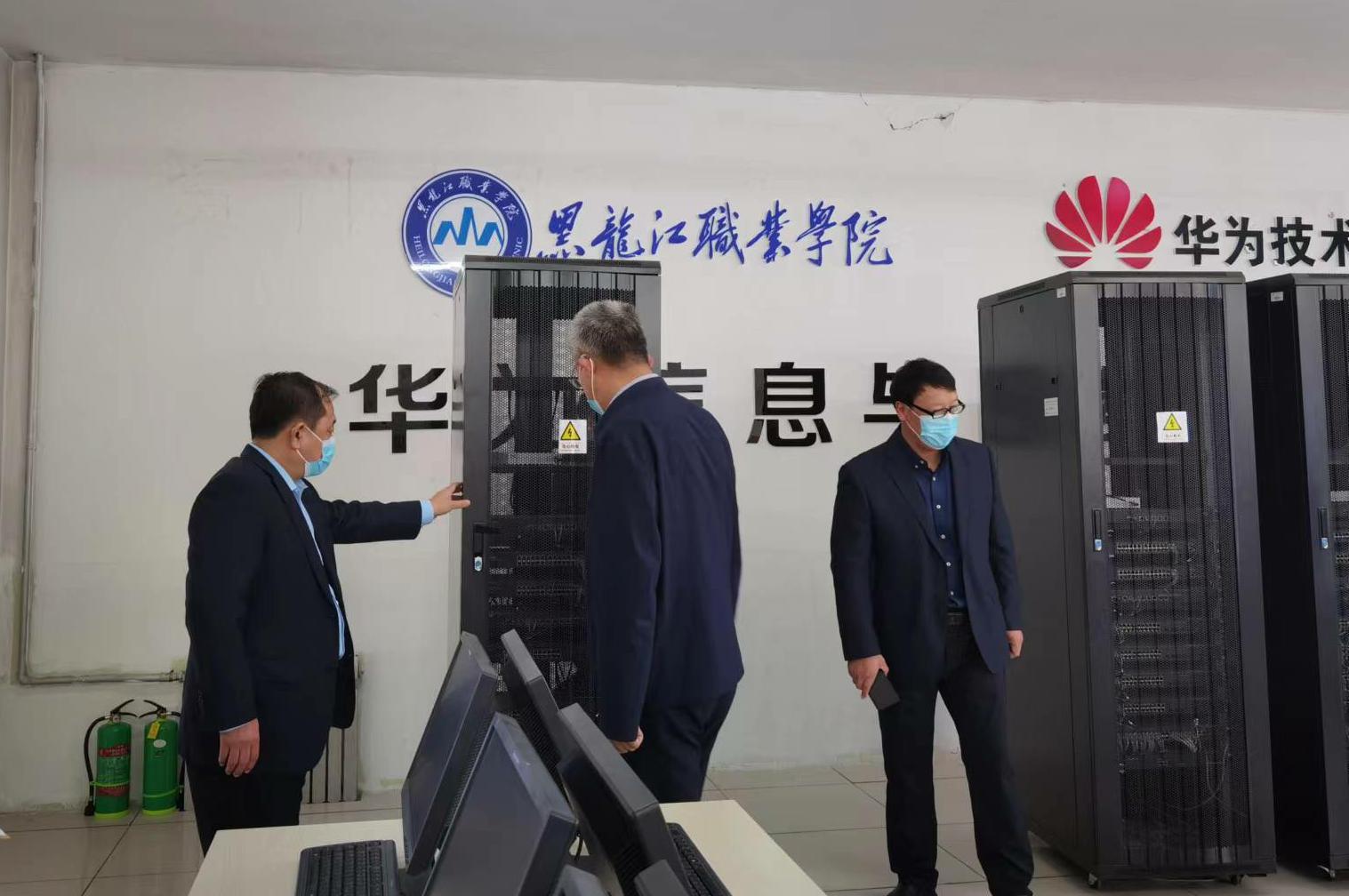 王利文校长,首先对2号教学楼1楼各实训室进行了检查,询问了计算机等硬件设备运行状态,能否满足学生课程实训需要,有哪些更新计划等,金忠伟书记详细介绍了设备目前使用情况、存在问题,以及更新计划。随后对移动互联网应用、软件开发等新建实训室进行了检查,王校长对新建实训室的环境以及先进的云服务器管理技术等表示肯定和赞同。最后,王校长一行人员参观了龙漫工作室和龙职.天阳宏业产教融合实训基地,张晓霖院长向王校长介绍了信息工程学院校企合作、产假融和项目开展情况。