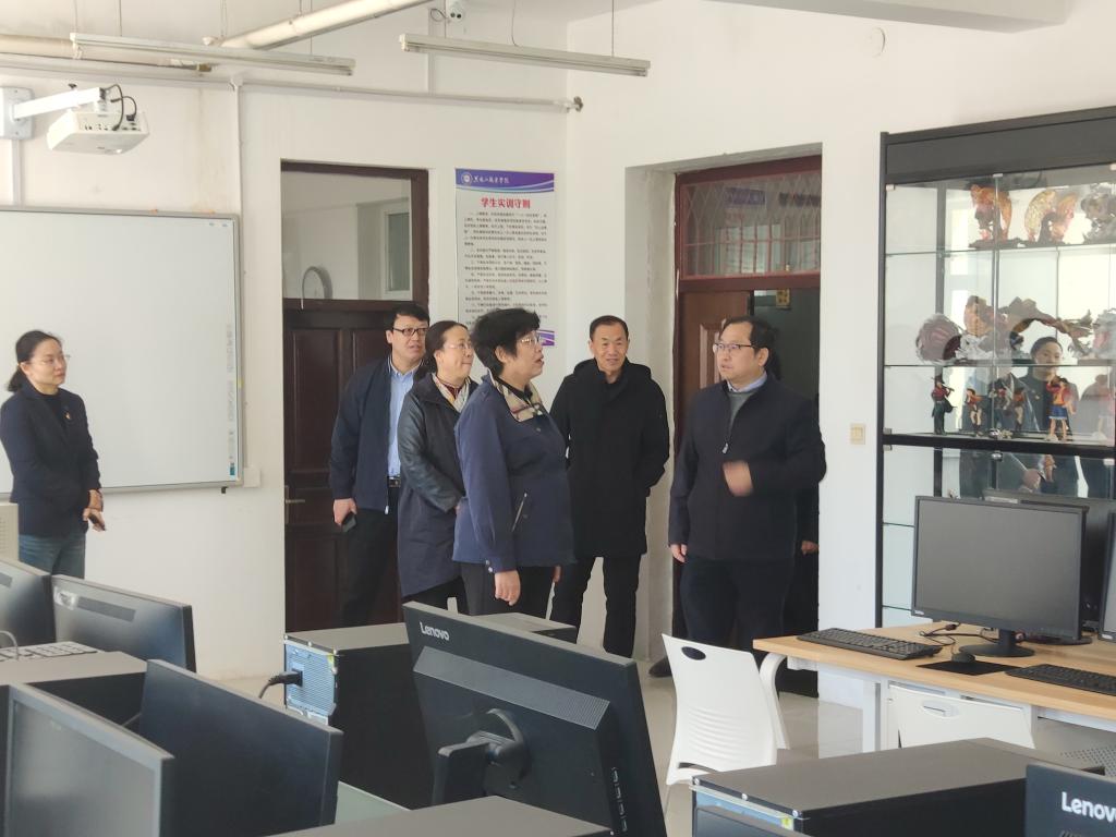 调研期间,崔治春走访了信息工程学院人工智能技术应用、动漫制作技术及信息技术基础等实训室,调研了实训室软硬件环境,教学教研等项目开展情况,听取了信息工程学院党总支书记金忠伟的工作汇报,并就学院建设、专业发展、教师团队建设、学生人才培养等相关问题进行了讨论。
