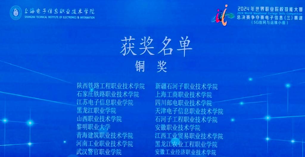 永利集团88304官网在2024年世界职业院校技能大赛·电子与信息赛道三·5G组网与运维赛项中,张秀杰、罗洋两位教师指导何宗君、姚曼如、李博健、张馨月等4名同学获得争夺赛铜奖!