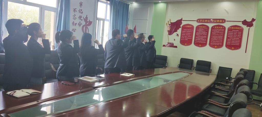最后全体党员一起重温入党誓词,全体党员郑重地举起右手,面对党旗庄严宣誓。在激昂的宣誓声中,每位党员更加深切地感受到了新时代党员的精神追求,进一步强化了对党忠诚、全心全意为人民服务的使命担当。