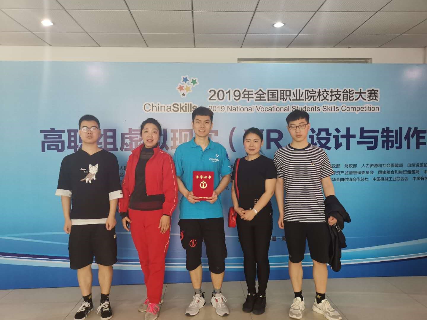 图5于雪梅、王月明老师指导2017级动漫制作技术专业学生谢亮、丁佳明、刘铭洲荣获2019年全国职业院校技能大赛虚拟现实(VR)技术三等奖