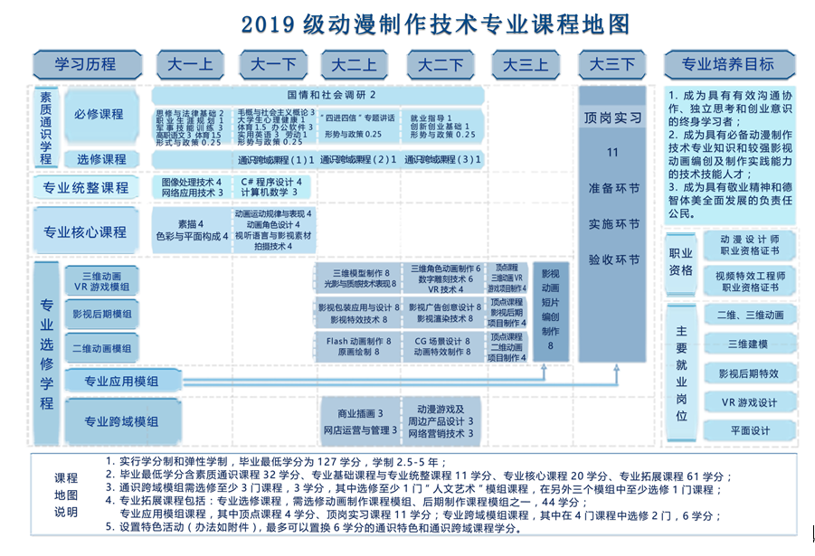图3 2019级动漫制作技术专业课程地图
