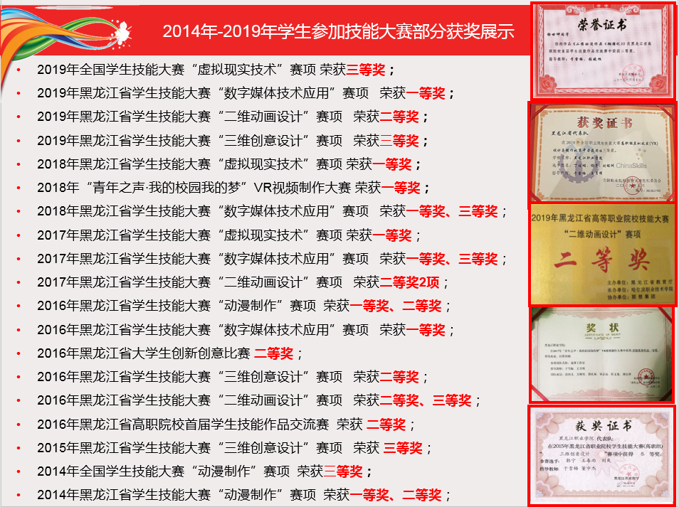 图1 2014年至2019年动漫制作技术专业在校学生参加技能大赛部分获奖展示