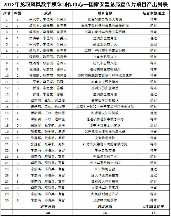 表3 2018年龙职凤凰数字媒体制作中心--国家安监总局宣传片项目产出列表