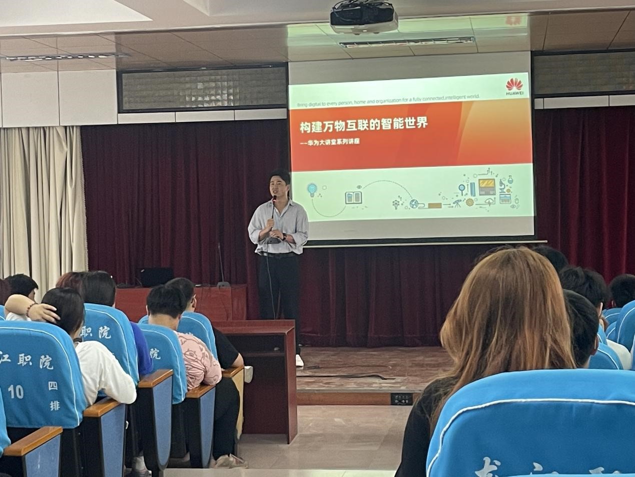 在数字化浪潮不断涌动的今天,物联网技术已成为推动社会进步的重要力量。6月20日晚,一场主题为“构建万物互联的智能世界”的专题讲座在龙职信息工程学院隆重举行。本次讲座由华为公司技术专家、专家级工程师吴健先生主讲,吸引了信息工程学院计算机网络技术专业大一学生的热情参与。