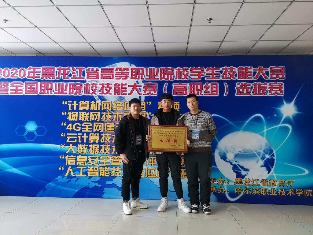 12月22日,2020年黑龙江省职业院校学生技能大赛暨全国职业院校技能大赛(高职组)选拔赛“4G全网建设技术”赛项在哈尔滨职业技术学院落下帷幕。永利官网由张秀杰、罗洋老师指导的李涛、王永恒、吴闯、徐胜男四名同学获得省赛二等、三等奖各一项,顺利入围国赛。