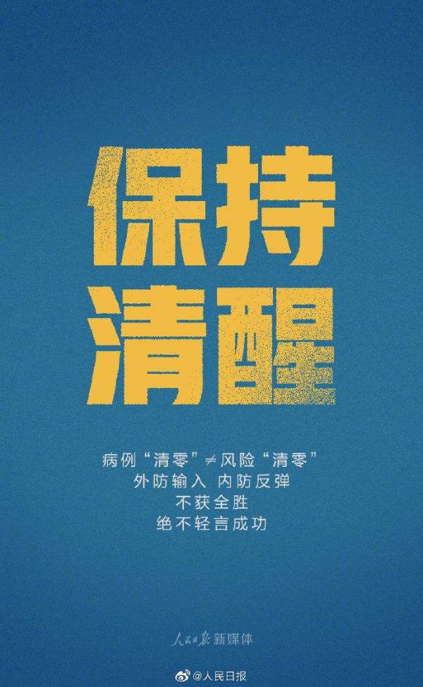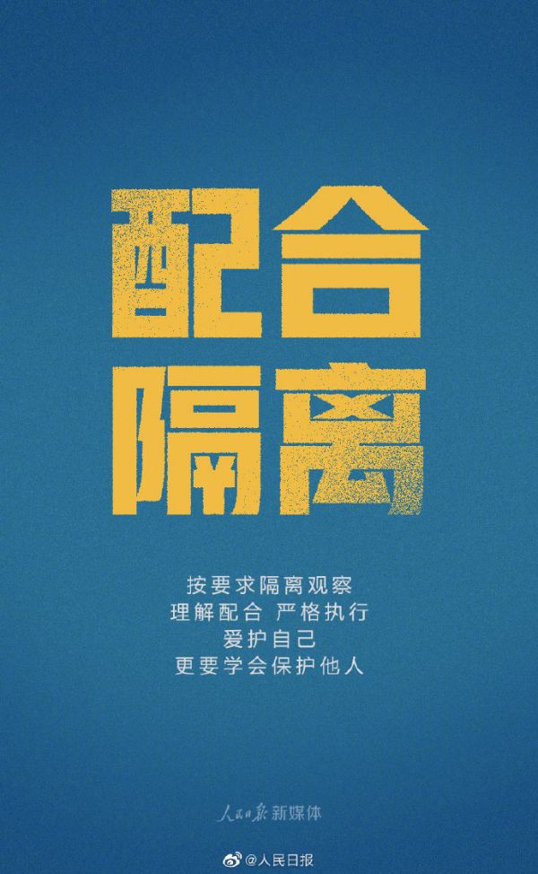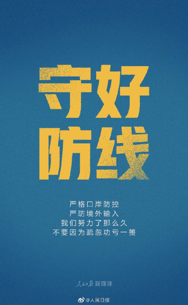 如实报告、配合隔离、守好防线、绝不大意、保持清醒、守望相助。外防输入、内防反弹,不获全胜,绝不轻言成功。对自己负责,也请尊重所有人此前的努力!