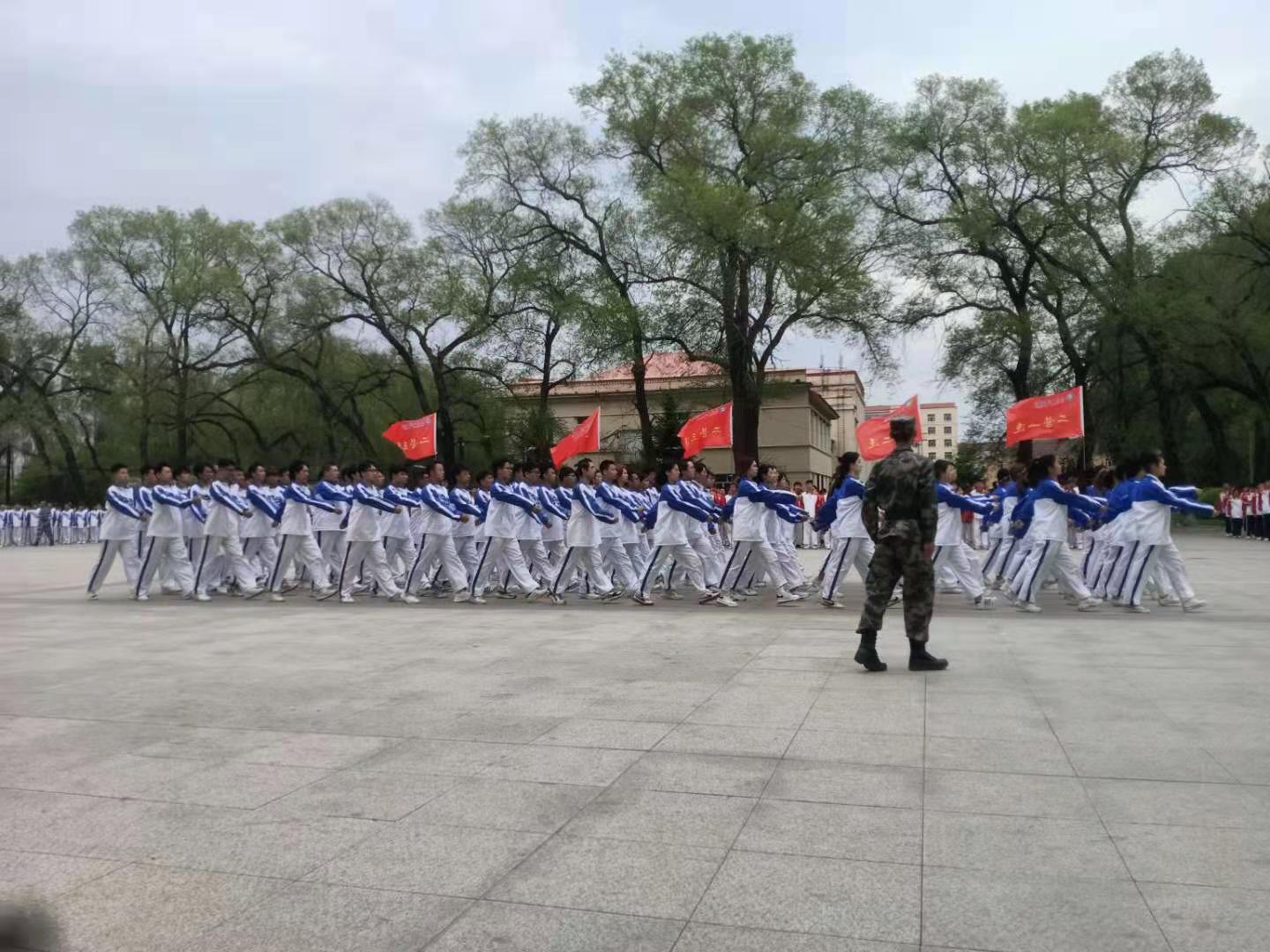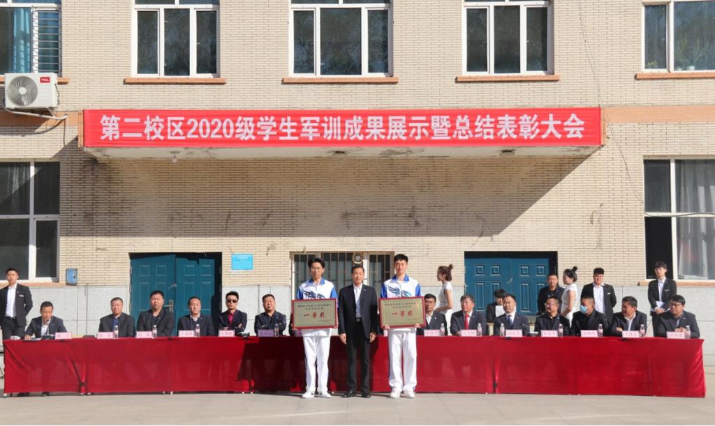 各获奖连队代表进行了会操表演。队列表演后,对2020-2021学年第二学期学生军训标兵寝室及标兵个人、队形队列奖项进行了表彰,并向获奖的各连队及同学颁发了证书。